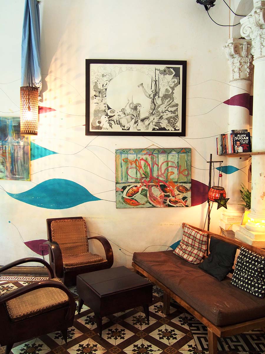 Le dernier jour à Hanoï je n’avais pas envie de me lever, de me presser. Pendant que les filles allaient visiter le mausolée d’Ho Chi Minh, je suis allée prendre un petit déjeuner dans un des cafés « branchés » de la ville, le The Hanoi Social Club. Le lieu m’a immédiatement séduite. La décoration est atypique, un mélange de vieux mobilier dépareillé dans une atmosphère cosy. Le genre d’endroit paisible où je pourrais passer la journée à rédiger de supers articles pour mes lecteurs 😉