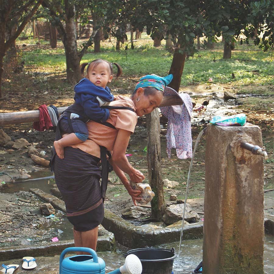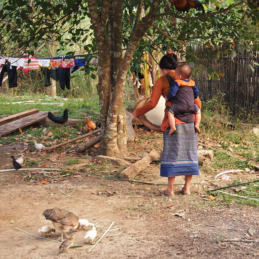 L’arrivée dans le village en milieu d’après-midi nous donne l’occasion de prendre le temps de découvrir la communauté ainsi que leur mode de vie. Nous prenons une « douche » dans une des fontaines communes – l’eau était gelée, on s’est régalées. Après dîner, nous partageons un moment autour du feu avec le chef du village, son épouse et leurs enfants. Nous le questionnons sur la vie quotidienne Hmong, les croyances animistes de cette ethnie – grâce à l’interprétation de notre guide. Nous apprécions ce moment de partage avec nos hôtes avant de nous coucher dans un calme absolu.